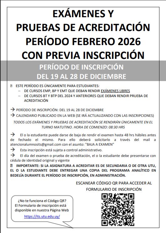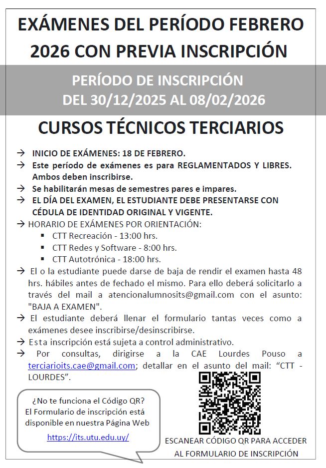 CALENDARIO EXÁMENES DICIEMBRE - CURSOS TÉCNICOS TERCIARIOS