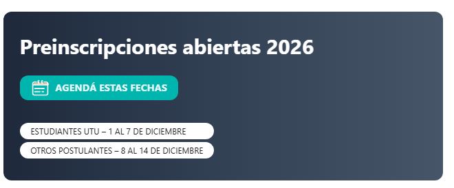 COMETAS EN VIENTOS DEL CERRITO IMPORTANTE: PREINSCRIPCIÓN A CARRERAS TERCIARIAS 2026 CON CUALQUIER BACHILLERATO APROBADO (HASTA DOS PREVIAS) Hacer clic aquí para conocer carreras de UTU terciarias ¿TE INTERESARÍA INFORMARTE SOBRE LOS CURSOS TERCIARIOS QUE EXISTEN EN ITS? INSCRIBITE PARA PARTICIPAR DE LAS CHARLAS INFORMATIVAS Inscripción a la charla aquí DIPLOMAS ACTUALIZADOS (15/09/2025) Horario: Lunes a viernes de 09:00 a 12:00hs con CI. Deberán coordinar el retiro previamente por el mail: atencionalumnosits@gmail.com En caso de ser retirado por un tercero deben traer carta poder autorizada por el interesado y fotocopia de ambas cédulas. Hacer clic sobre la imágen COMUNICADO IMPORTANTE